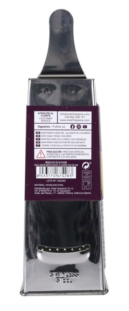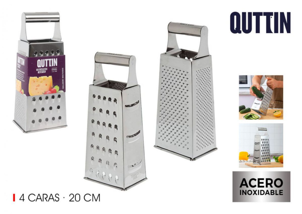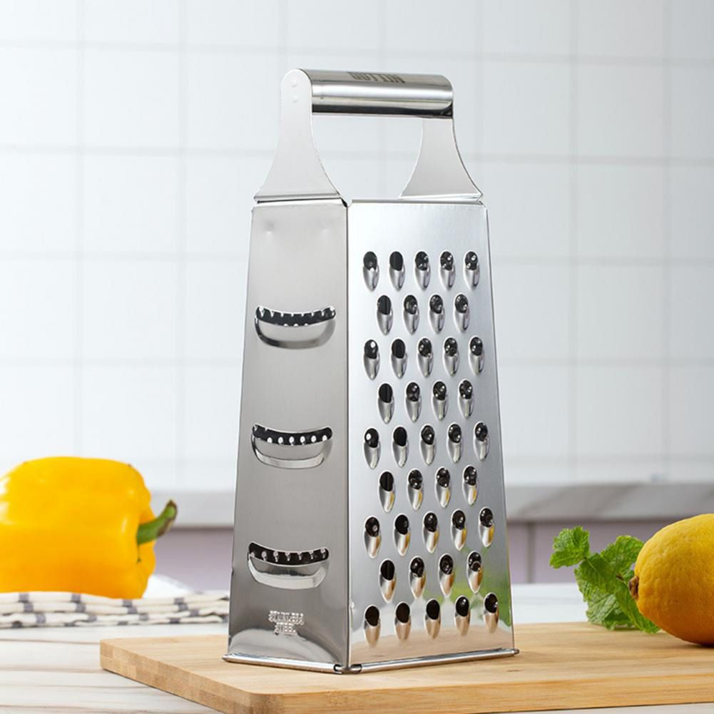 A 20 cm magas, rozsdamentes acél reszelő a konyhai eszközök egyik legalapvetőbb és leghasznosabb darabja. Négy oldalán különböző kialakítású vágófelületek találhatók, így többféle konyhai műveletet is elvégezhetsz vele – mindezt egyetlen szerszámmal.