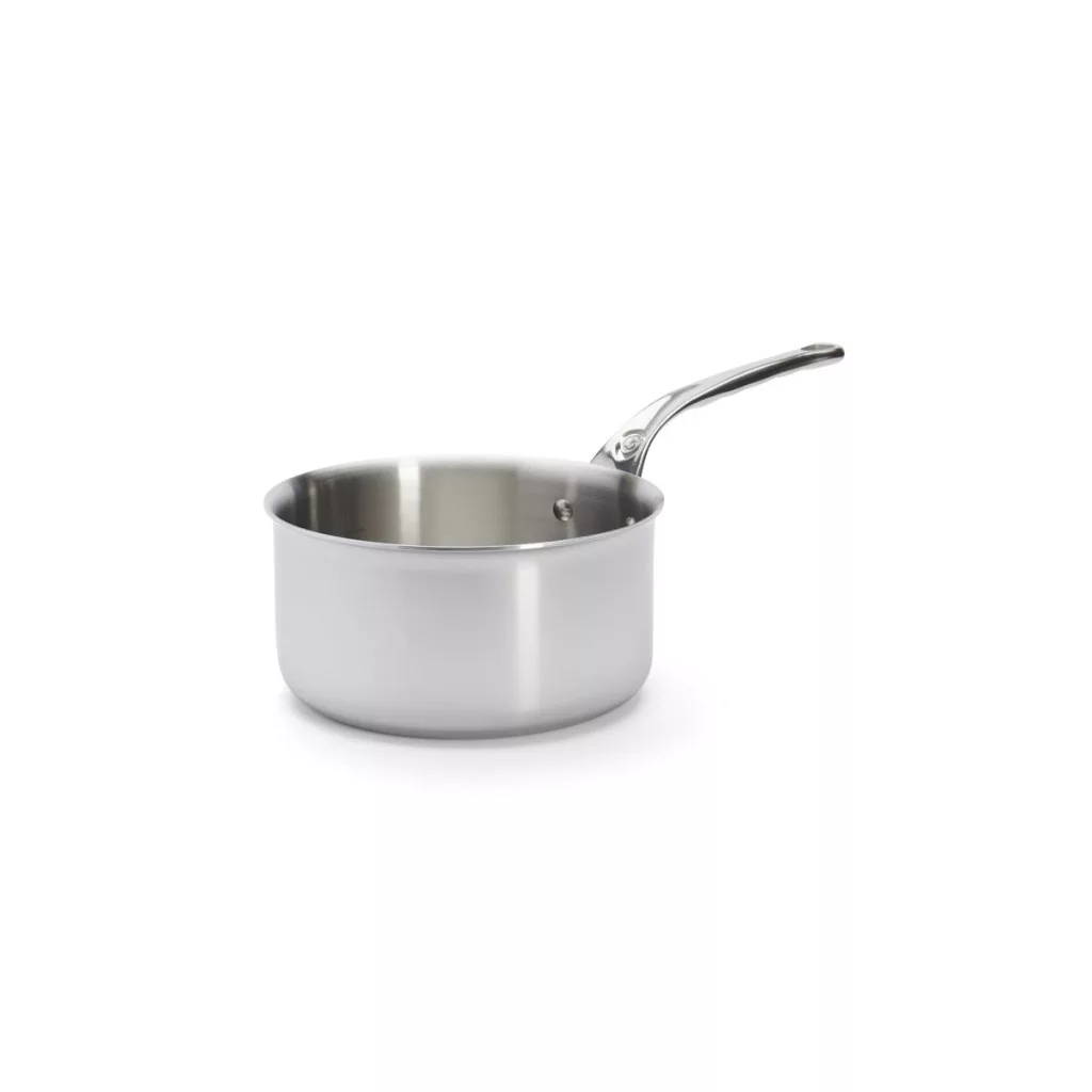 A de Buyer Affinity sorozatának 3,4 literes, 20 cm átmérőjű rozsdamentes acél nyeles lábasa a professzionális kulináris szabványoknak megfelelően készült. Többrétegű anyaga gyors és egyenletes hőelosztást biztosít, így ideális redukáló főzéshez, szószokhoz és minden típusú főzőlapon használható.