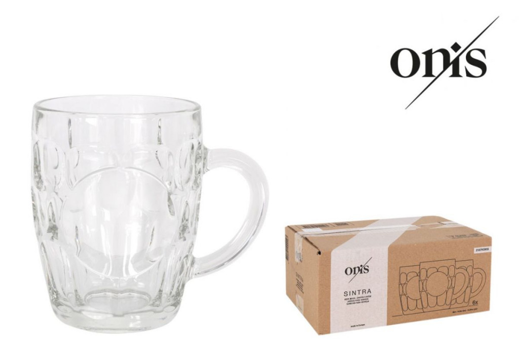 Az Onis Sintra 550 ml-es söröskorsó klasszikus megjelenésű, vastag falú üveg korsó, amelyet intenzív vendéglátói használatra terveztek. Masszív kialakítása stabil tartást és hosszabb hőtartást biztosít.
