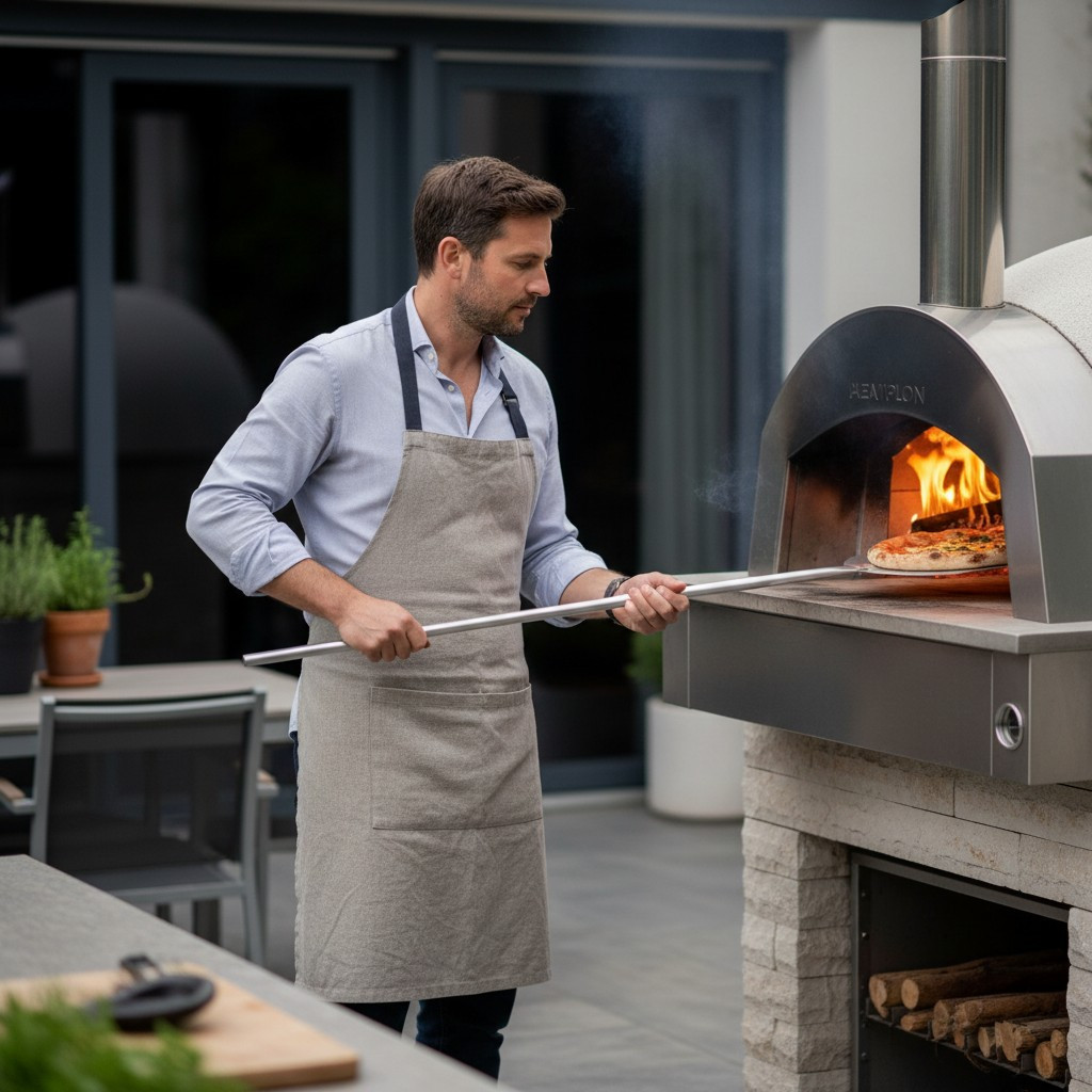 - Ergonomikus kialakítás: Hosszú, 110 cm-es nyél, amely biztonságos távolságot biztosít a kemencétől, miközben kényelmes fogást nyújt.