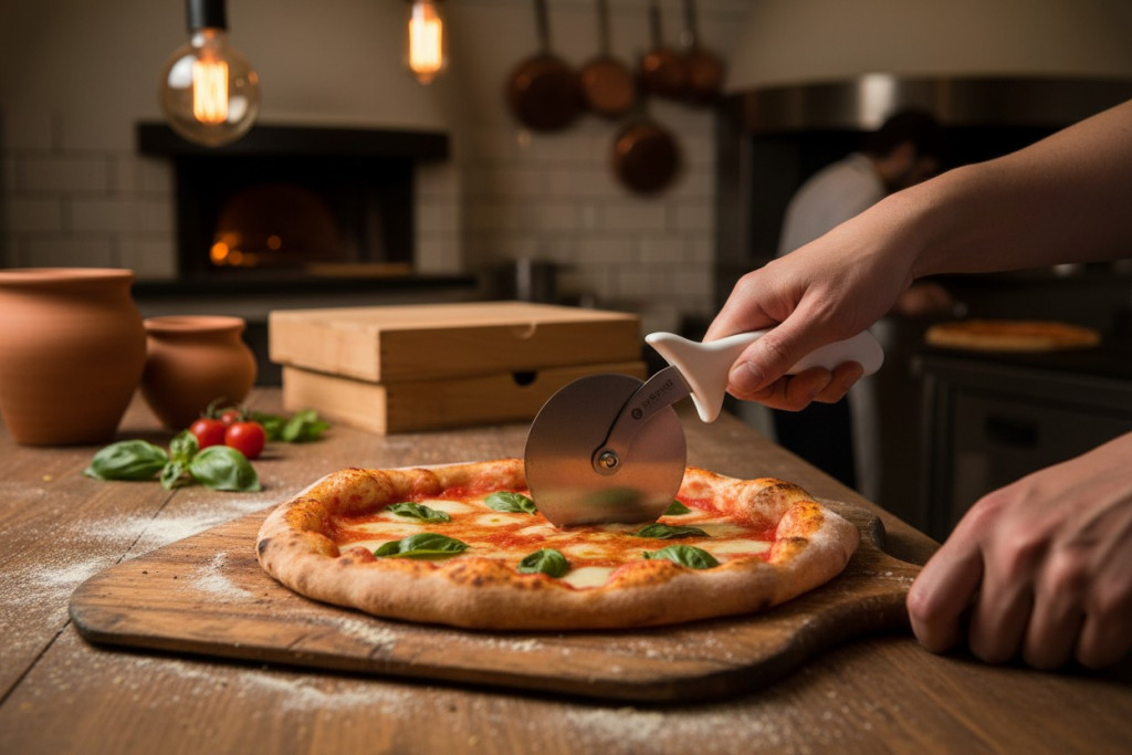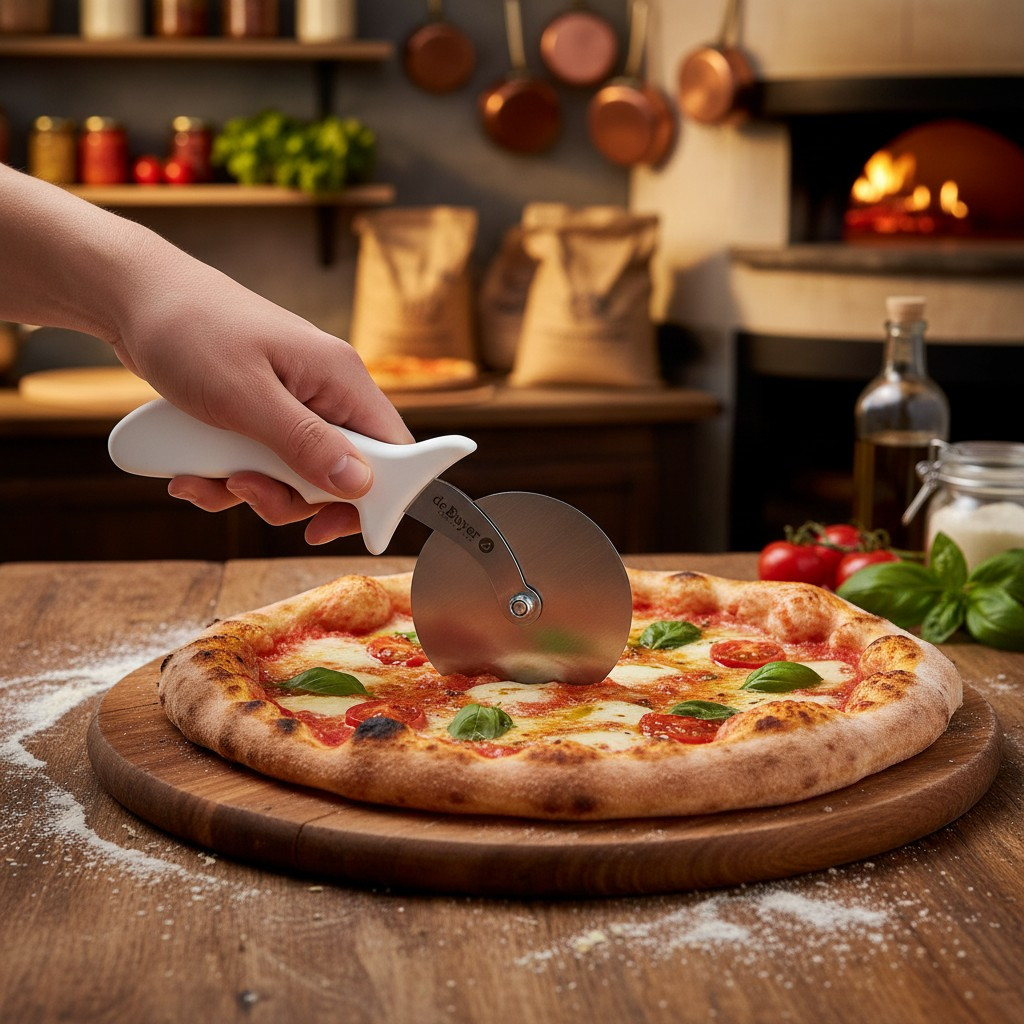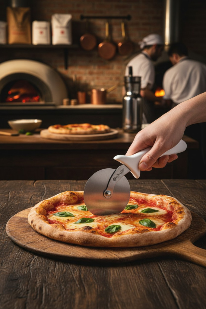 A pizzaszeletelő kerék ideális pizzériákba, éttermekbe, street food konyhákba és otthoni pizza sütéshez is.
