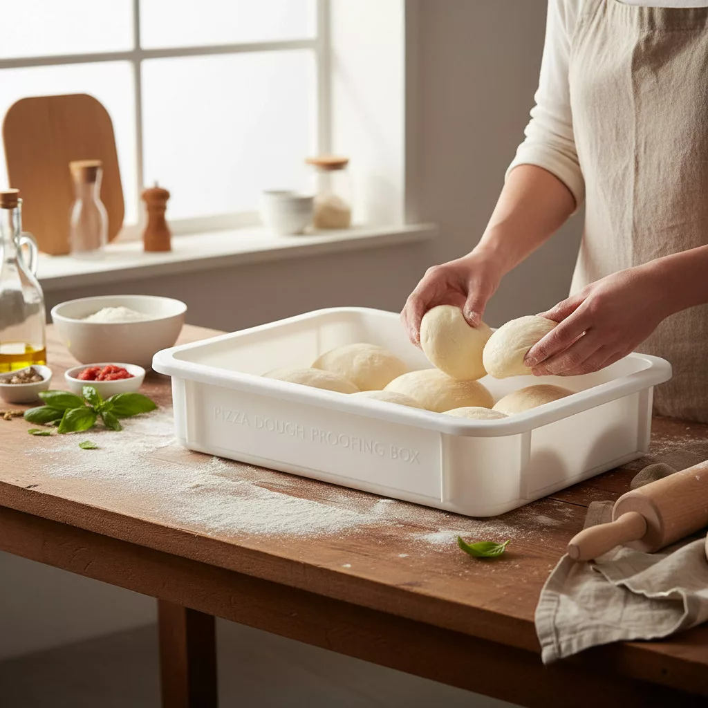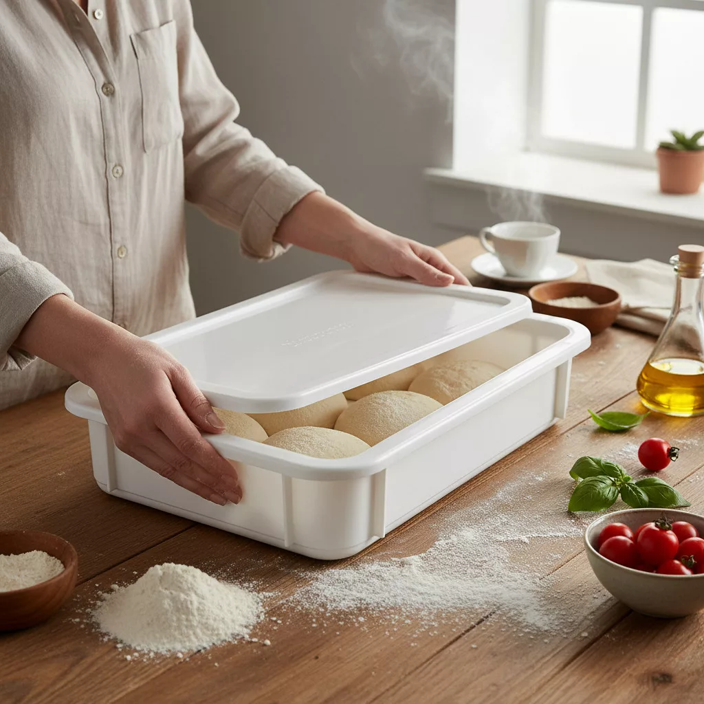 Strapabíró, élelmiszer-biztonságos anyagból készült pizzatészta kelesztőláda otthoni és professzionális felhasználásra.