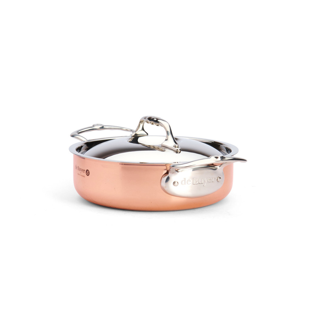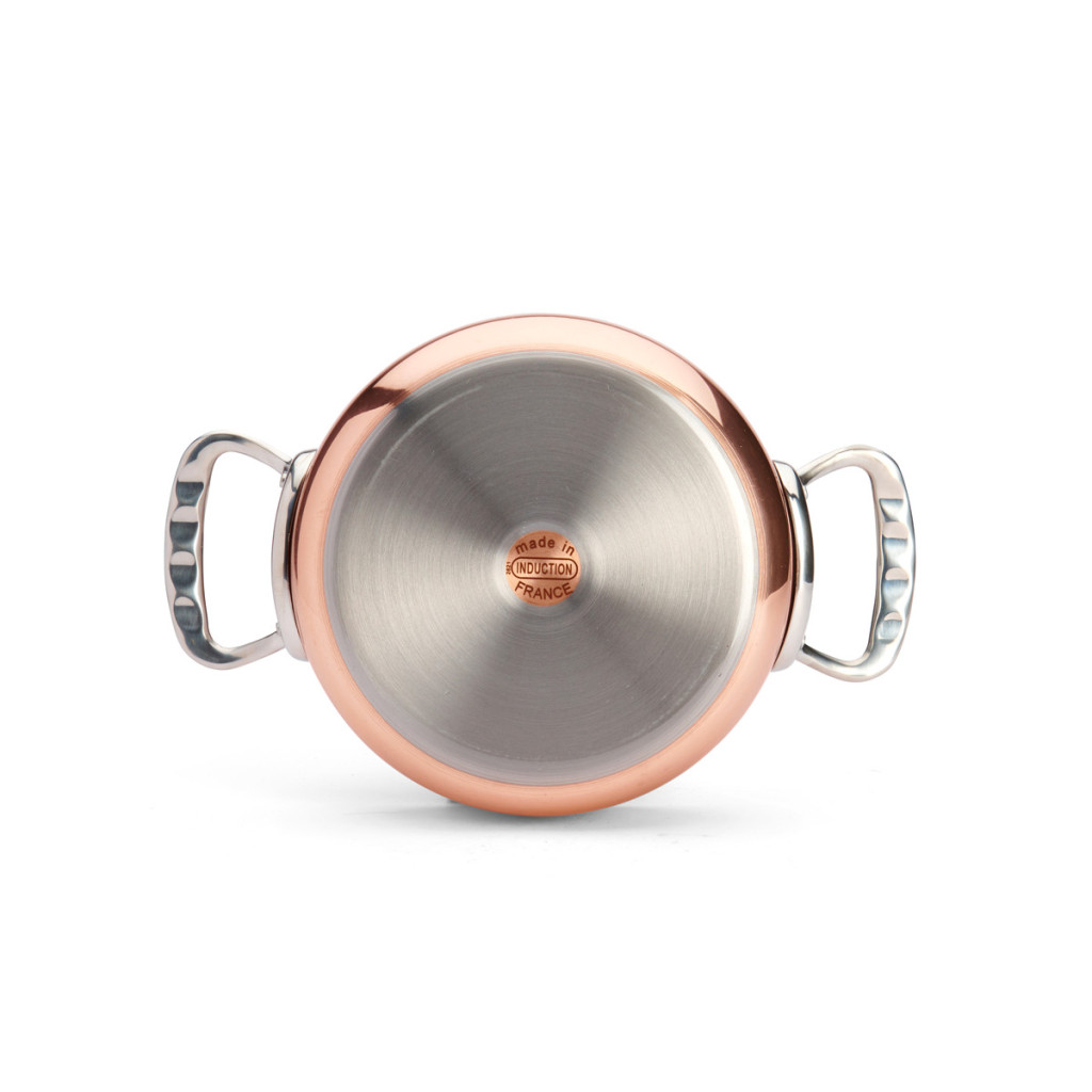 A de Buyer Prima Matera alacsony lábas fedővel egyedülálló kombinációja a réz kiváló hővezető képességének és a rozsdamentes acél praktikusságának. A 24 cm felső belső átmérőjű és 3,1 literes űrtartalmú serpenyő 90% rézből és 10% AISI 304 rozsdamentes acélból készült. Az egyenes, alacsony élek ideálisak a nedvesség jó elpárologtatásához és a gyümölcslevek kiváló karamellizálásához. A két szegecselt öntött rozsdamentes acél fogantyú kényelmes és biztonságos használatot biztosít. Az innovatív indukciós alapnak köszönhetően minden főzőlapon, beleértve az indukciót is, használható. A réz ápolásához polírozó paszta ajánlott, a rozsdamentes acél belső rész pedig kézzel mosható. A serpenyő belső magassága 6,8 cm, külső átmérője 24 cm, teljes magassága 12 cm, teljes hossza 36 cm, teljes szélessége 25,6 cm, az indukciós alap átmérője 22 cm, súlya pedig 2,51 kg.