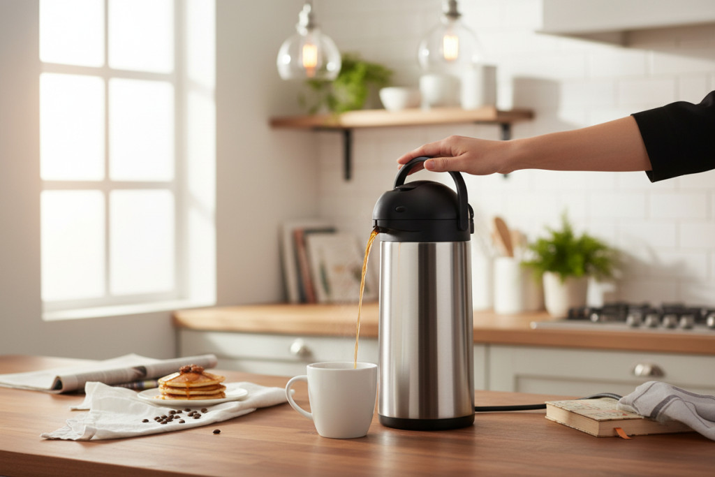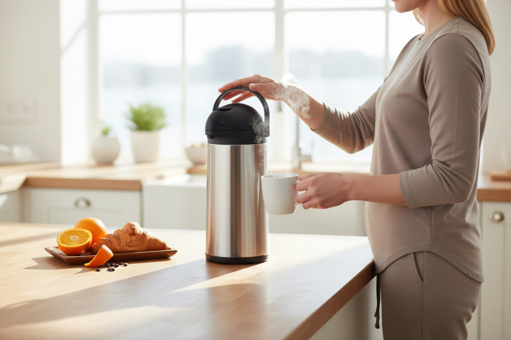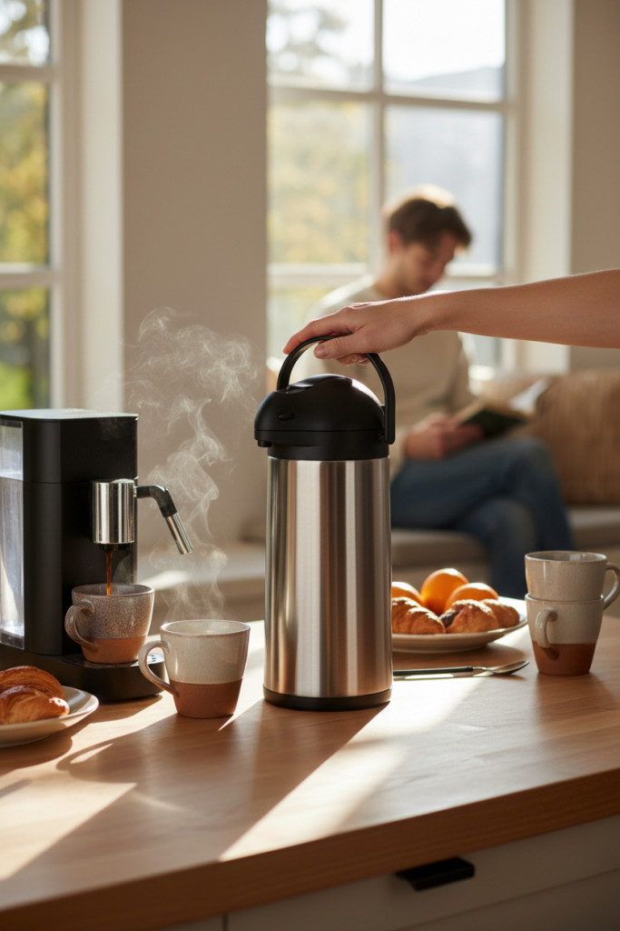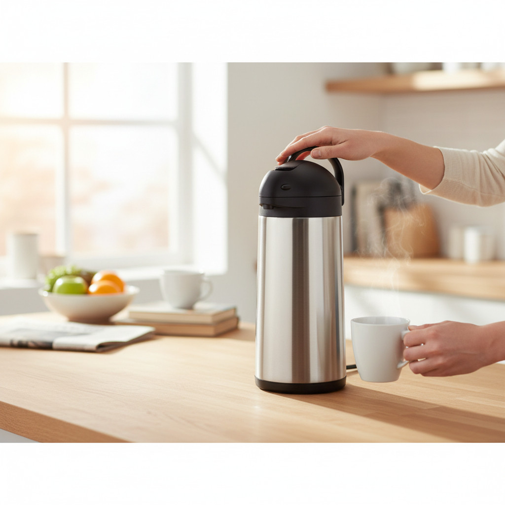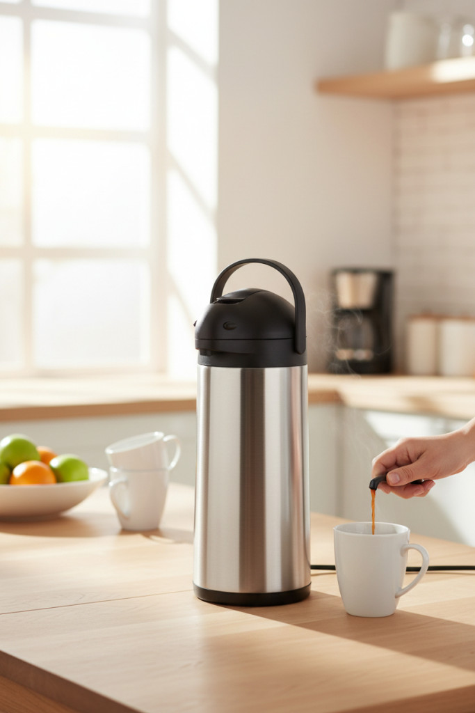 Az 5 literes pumpás termosz professzionális megoldás nagyobb mennyiségű forró ital – kávé, tea, forralt bor – melegen tartására és gyors adagolására. A rozsdamentes acél test és a masszív belső kialakítás hosszú távú, intenzív használatra készült.