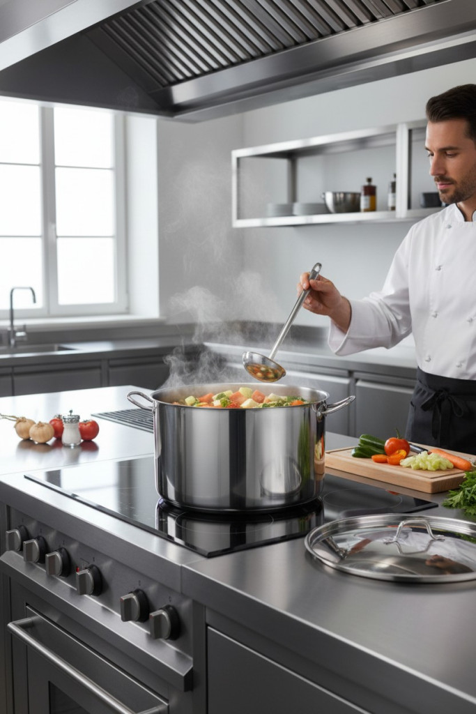 Éttermek, menzák, szállodák és nagycsaládos háztartások számára ideális, ahol a nagy mennyiségű főzés napi rutin. Strapabíró, hosszú távra tervezett edény, amely a legnagyobb kihívásoknak is megfelel.