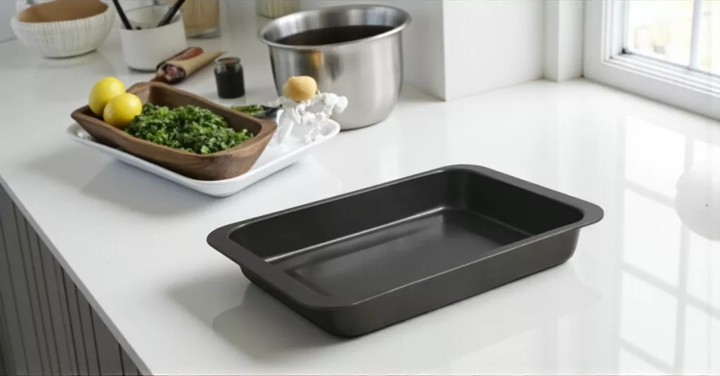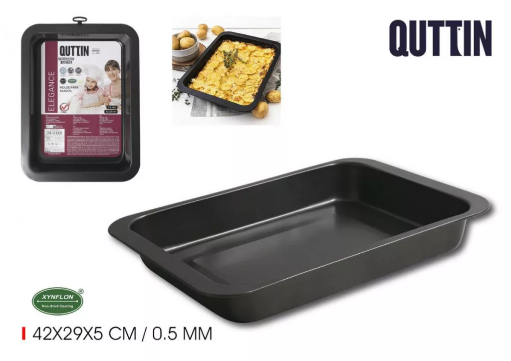 A Quttin tapadásmentes bevonatú sütőtepsi a nagy adagok mestere. A 42×29 cm-es méret ideális nagy családoknak, éttermeknek vagy rendezvényekhez, amikor egyszerre kell sok ételt készíteni. A tapadásmentes felület biztosítja, hogy az étel ne ragadjon le, a szénacél alap pedig gondoskodik az egyenletes hőeloszlásról.