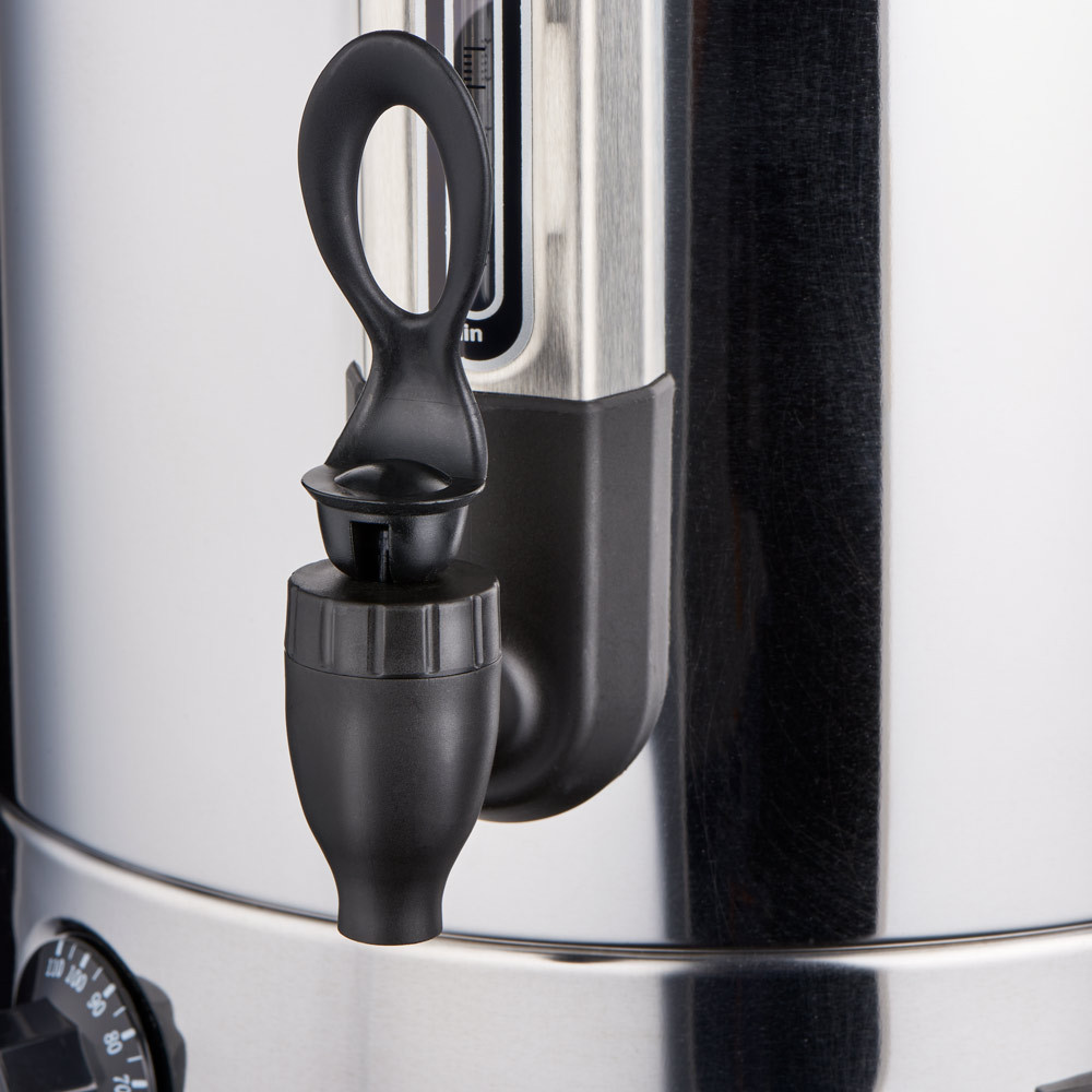 A cseppmentes adagolócsap biztosítja a tiszta és pontos kiöntést, így a készülék önkiszolgáló környezetben is jól használható. A vízszintjelző segít az ellenőrzésben, míg a biztonsági termosztát védi a készüléket a túlmelegedéstől.