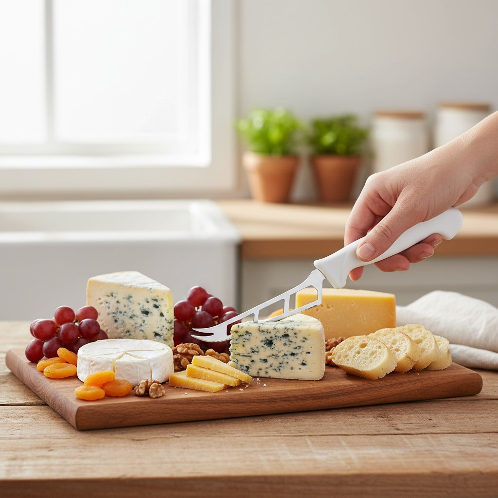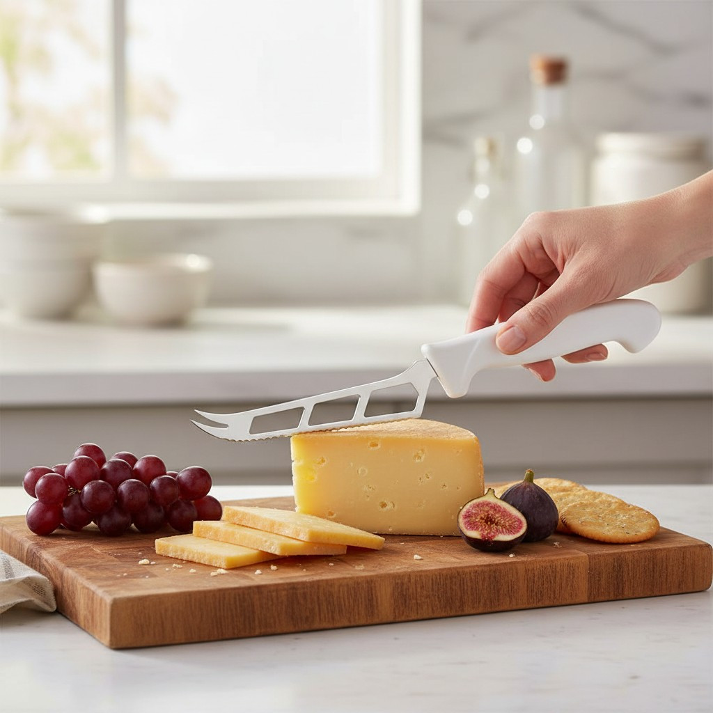• Használat: A sajtkést a sajt típusának megfelelő szögben tartva szeletelje a sajtot. Kemény sajtokhoz használjon erősebb nyomást, míg lágy sajtokhoz finomabb mozdulatokat.