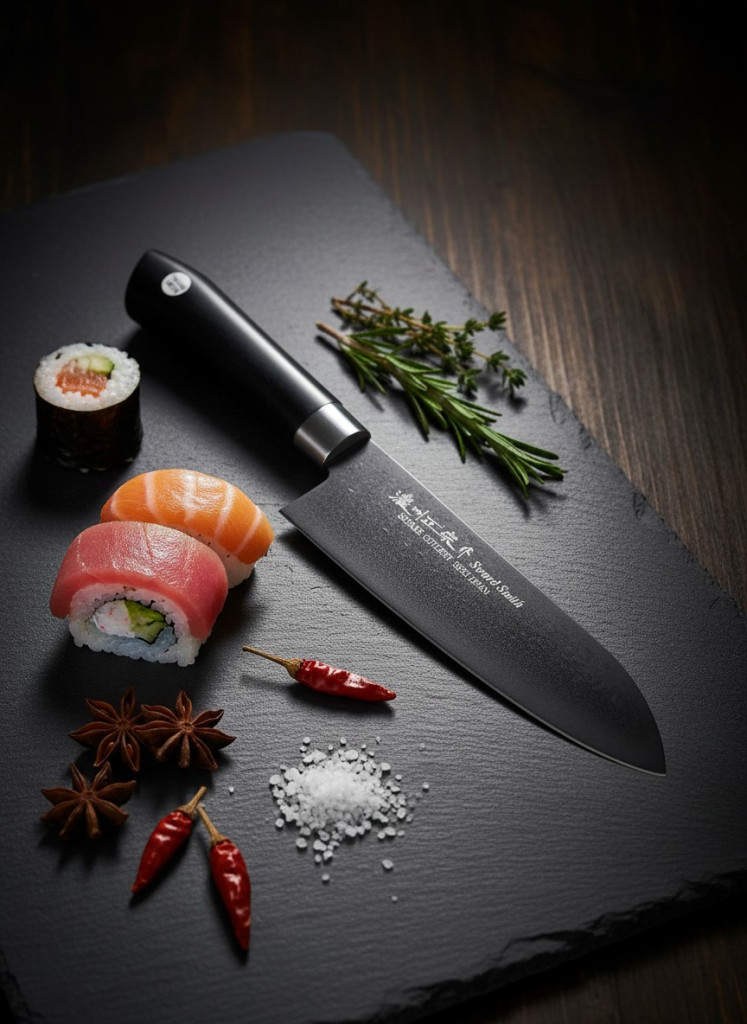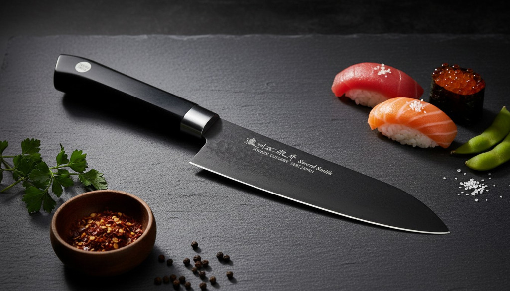 Satake Sword Smith Titan Santoku szakacskés 17 cm-es fekete pengével