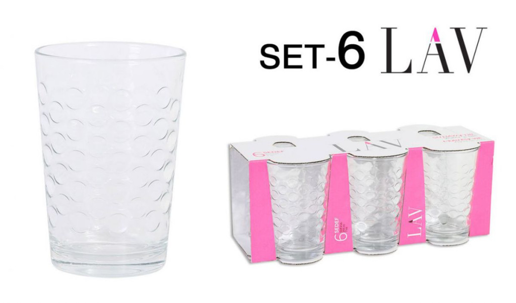 LAV Sedef vizespohár szett – 6 darab 205 ml-es üveg pohár elegáns formával, éttermek és otthonok számára