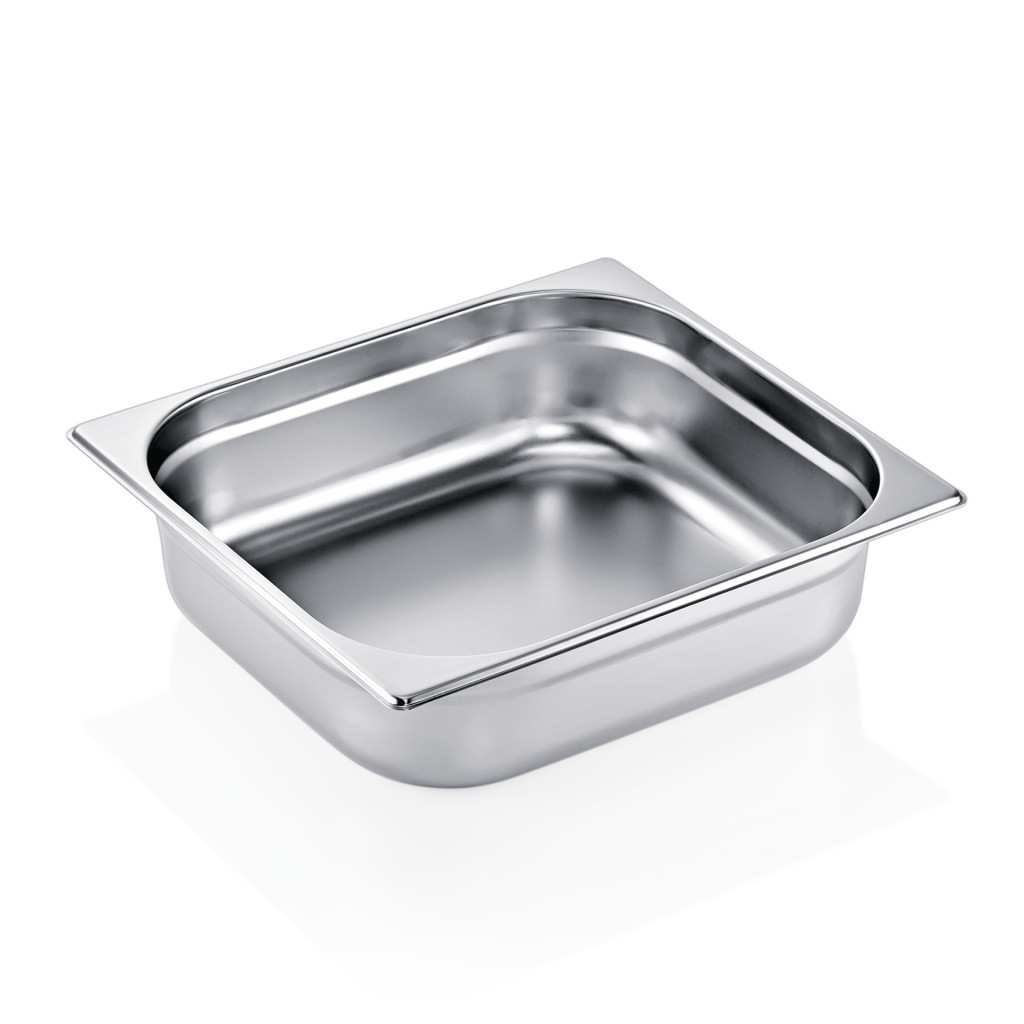 Gastronorm 2/3 méret (354 × 325 mm) lehetővé teszi a szabványos kompatibilitást melegentartókkal, hűtőegységekkel és regálrendszerekkel.