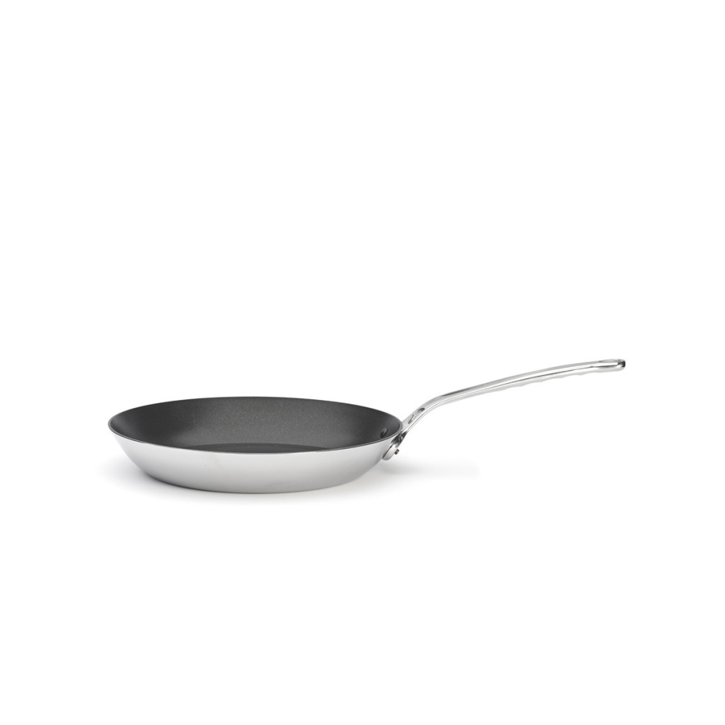 Ez a professzionális minőségű, rozsdamentes acél tapadásmentes serpenyő Lyonnaise profilszoknyával ideális finom főzéshez. Többrétegű anyaga gyors és egyenletes hőelosztást biztosít, a tapadásmentes bevonat pedig ideális a zsírszegény főzéshez és a könnyű tisztításhoz.
