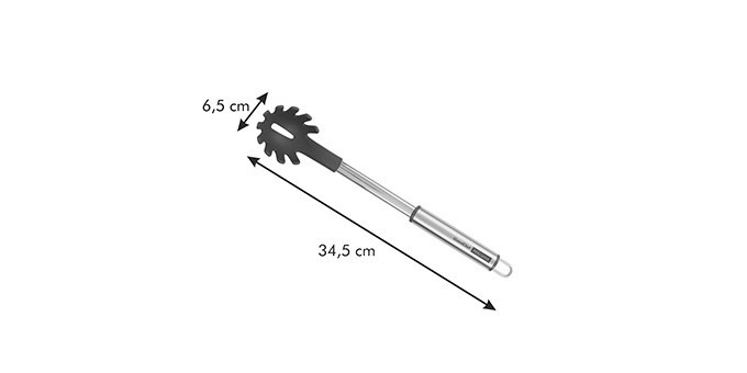 A speciális hőálló műanyag fej ellenáll a magas hőmérsékletnek, így akár forrásban lévő vízből is biztonságosan kiemelheted a spagettit vagy más hosszú tésztát.