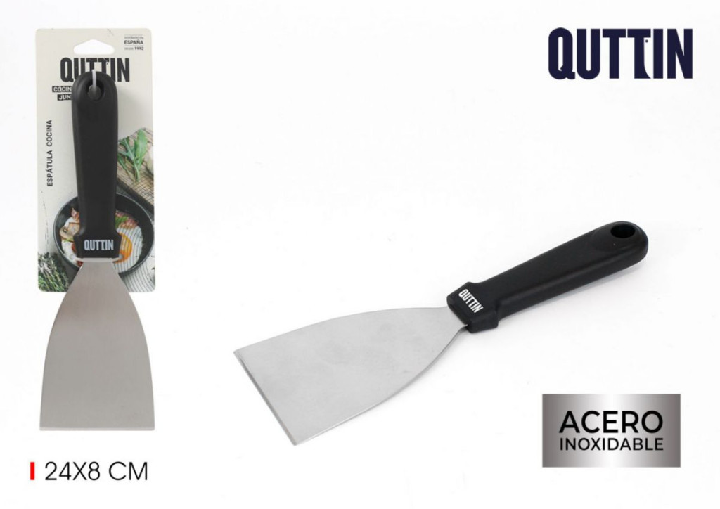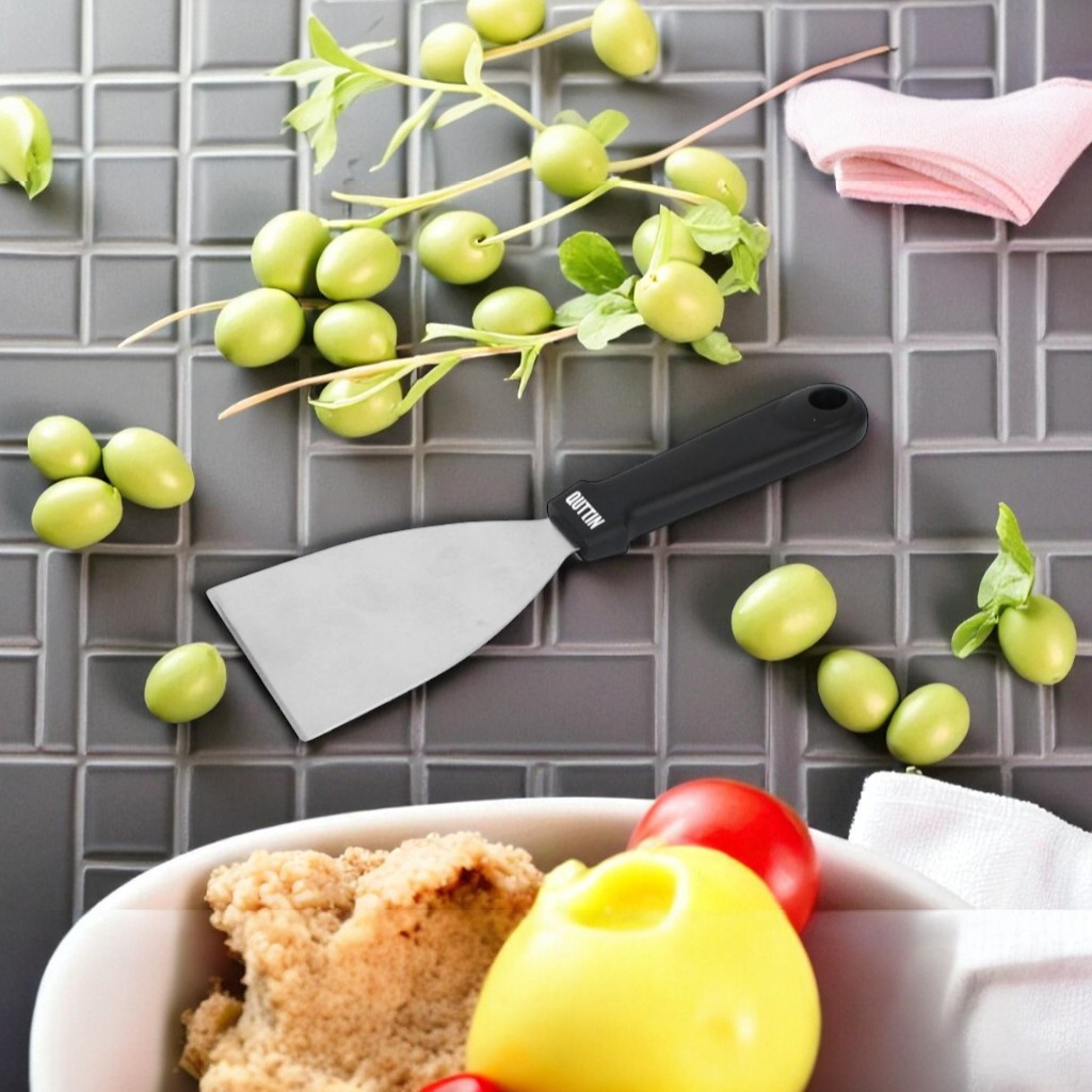 A spatula rozsdamentes acél feje hő- és korrózióálló, így hosszú távon is megőrzi formáját és fényét. A műanyag nyél nem forrósodik át, kényelmes fogást biztosít, és csúszásmentes kialakításának köszönhetően biztonságos használatot nyújt. Ideális választás éttermekbe, büfékbe, cukrászatokba vagy otthoni használatra.