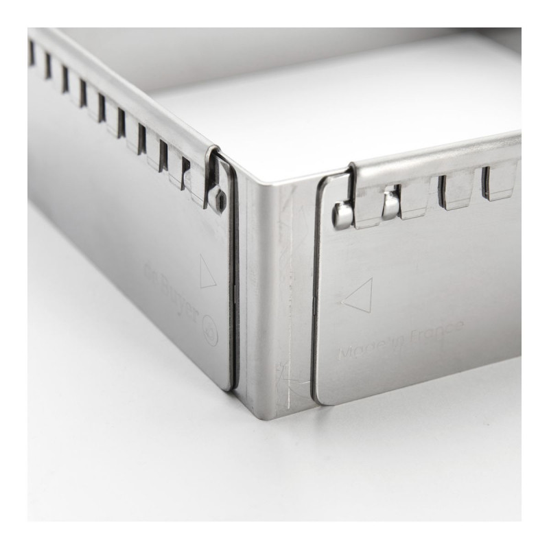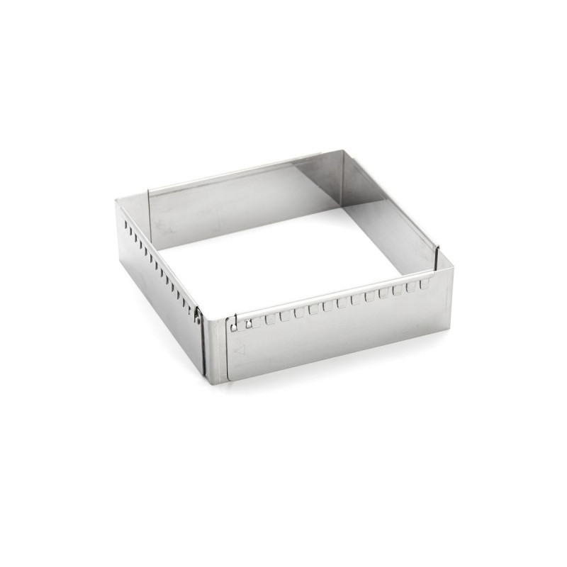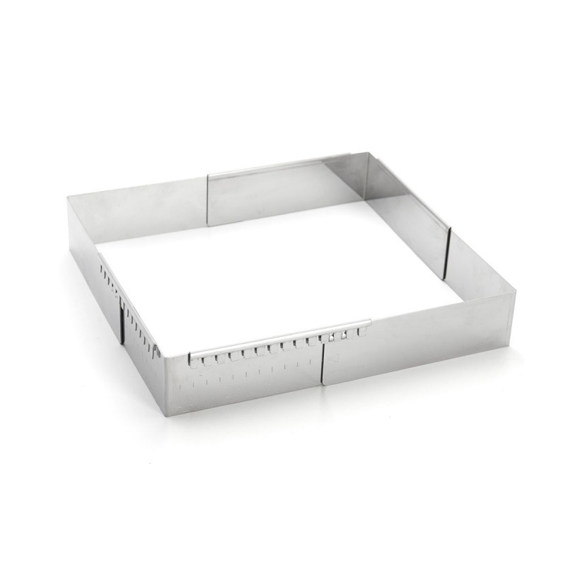 Ez a bővíthető sütőkeret egy kiváló minőségű és praktikus eszköz, amely tökéletes választás hab- vagy krémalapú desszertek, piskóták, Joconde kekszek és sok más finomság készítéséhez. A négyzet vagy téglalap alakú keret mérete könnyen állítható, így mindig a tökéletes formát kapja. Az éles szögeknek köszönhetően a desszertek szépen szeletelhetők. A rugós rozsdamentes acélból készült keret rugalmas és erős, így a tészta könnyen kioldható.