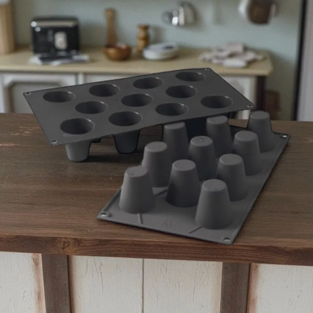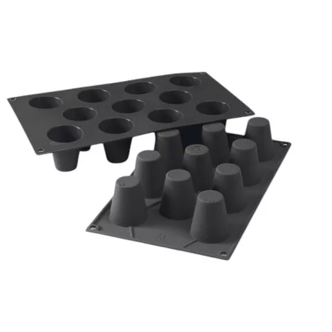 Ezzel a fekete szilikon kúpos formával a desszertjeid és sós kreációid is látványos új szintre lépnek! Tapadásmentes felülete miatt a kész remekművek úgy pattannak ki belőle, mint a vasárnapi puding a nagyi konyhájában. Fagyasztóban, sütőben, mindenhol megállja a helyét, ráadásul könnyen tisztítható. Készíts benne mousse-t, panna cottát, karamellpudingot vagy akár különleges sós falatkákat!