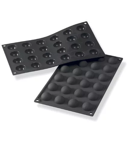 Szilikon sütőforma, Félgömb, 24 adag, 30 mm átm., 15 mm mély, fekete kiváló minőségű, ideális professzionális és otthoni használatra egyaránt.