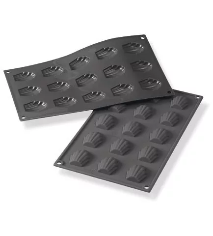 Szilikon sütőforma, Madeleine, 15 adag, 44x34 mm, 10 mm mély, fekete kiváló minőségű, ideális professzionális és otthoni használatra egyaránt.