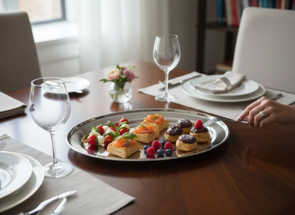 Nem egyszemélyes tálca, de nem is nagyrendezvényes méret. Akkor működik igazán, ha kisebb társaságnak, több adagban szeretnél kínálni.