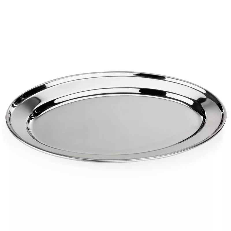 A ProLine 35×22 cm-es ovális szervírozó tálca rozsdamentes acélból készült, közepes méretű felszolgáló eszköz. Ideális több adag étel esztétikus és rendezett tálalásához.