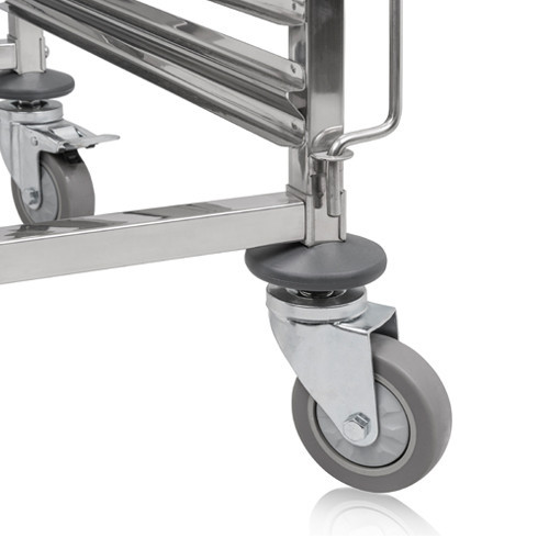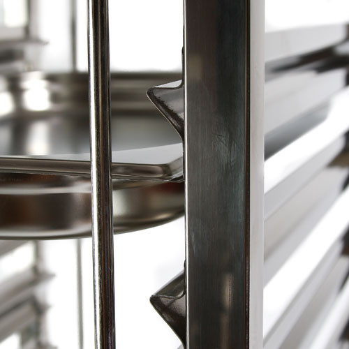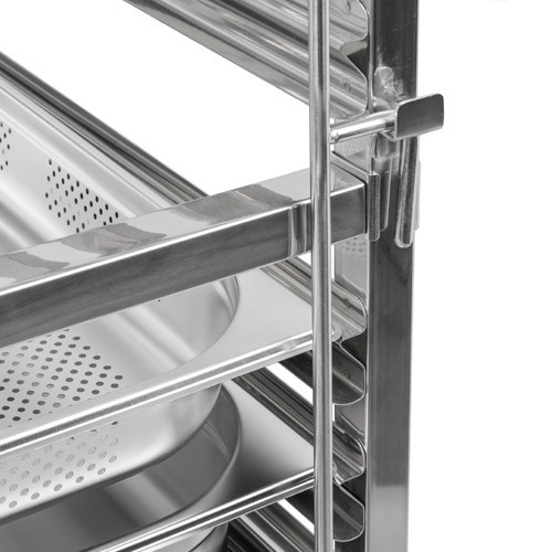 Ez a tálcatartó regálkocsi ideális megoldás a nagykonyhák, éttermek és vendéglátóipari egységek számára, ahol fontos a GN 2/1 méretű tálcák biztonságos és hatékony tárolása és szállítása. A masszív, rozsdamentes acélból készült szerkezet hosszú élettartamot garantál, míg a görgők biztosítják a könnyű mozgathatóságot.