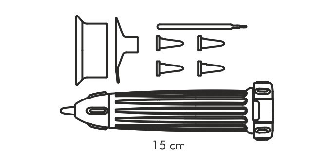 A Delícia tortadíszítő ceruza egy kiváló minőségű eszköz, amelyet a torták és sütemények dekorálásához terveztek. A ceruza hossza 15 cm, ami ideális méretet biztosít a könnyű és precíz munkához.