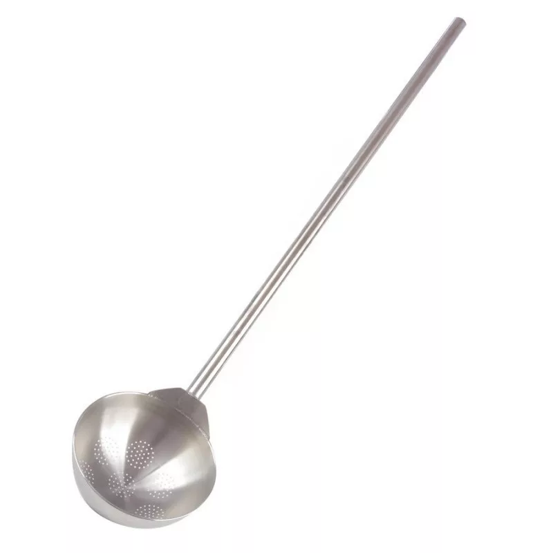 Az Üstmerő kanál egy 3 literes, perforált rozsdamentes acélból készült konyhai eszköz, amelynek mérete 25×120 cm. Ez a kanál kiválóan alkalmas a nagyobb mennyiségű étel vagy folyadék könnyed és hatékony átszűrésére vagy lecsapolására.A kanál rozsdamentes acélból készült, ami tartósságot és hosszú élettartamot biztosít. A perforált kialakítás lehetővé teszi, hogy a folyadék vagy az étel könnyedén átszűrődjön, miközben a szilárd részeket vagy a hulladékot visszatartja. Ezáltal a kanál ideális választás lehet például tészta, zöldség vagy hús lecsapolására, vagy akár a főzés közben keletkező zsír vagy egyéb szennyeződések leszűrésére.A kanál méretei, 25×120 cm, lehetővé teszik a nagyobb edényekben vagy serpenyőkben való használatot is. A hosszú nyél kényelmes fogást biztosít, és megakadályozza az égési sérüléseket, amikor forró folyadékot vagy ételt kell átszűrni.Az Üstmerő kanál 3 literes kapacitása lehetővé teszi a nagyobb mennyiségű étel vagy folyadék hatékony kezelését. Ezáltal ideális választás lehet éttermekben, konyhákban vagy otthoni használatra is, ahol gyakran szükség van nagyobb mennyiségű étel vagy folyadék átszűrésére vagy lecsapolására.Összességében az Üstmerő kanál egy praktikus és megbízható konyhai eszköz, amely segít a hatékony és könnyed étel vagy folyadék átszűrésében vagy lecsapolásában. A rozsdamentes acél anyag és a perforált kialakítás garantálja a tartósságot és a hatékonyságot, míg a nagyobb méret és a kényelmes fogás lehetővé teszi a könnyű használatot.