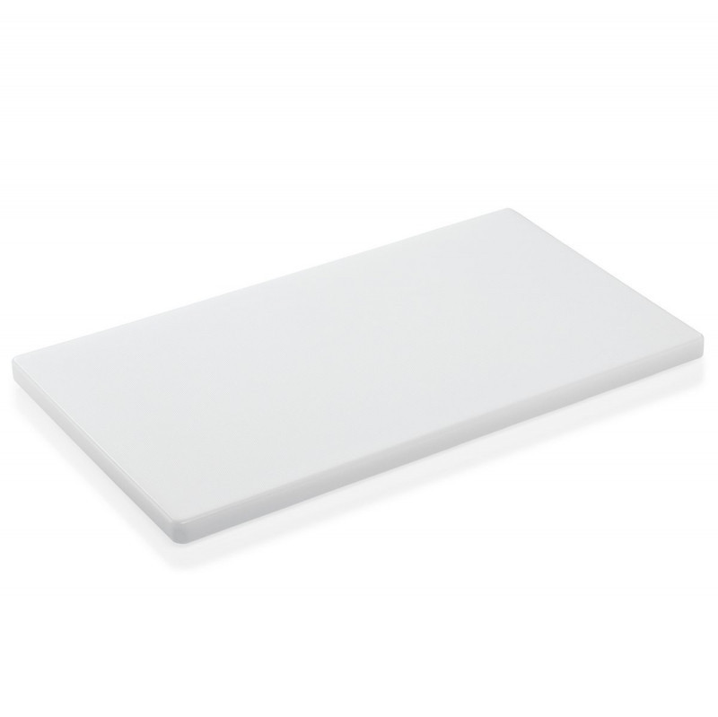 A Fehér műanyag vágódeszka GN 1/1 méret, 53x32,5x2 cm egy strapabíró, higiénikus és csúszásmentes megoldás, amely tökéletesen megfelel a HACCP szabványoknak. Nagy mérete és tartóssága miatt ideális nagykonyhák és professzionális konyhai környezet számára.