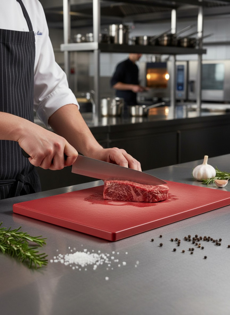 - HACCP kompatibilitás: A piros szín kifejezetten nyers húsok feldolgozására van kijelölve.