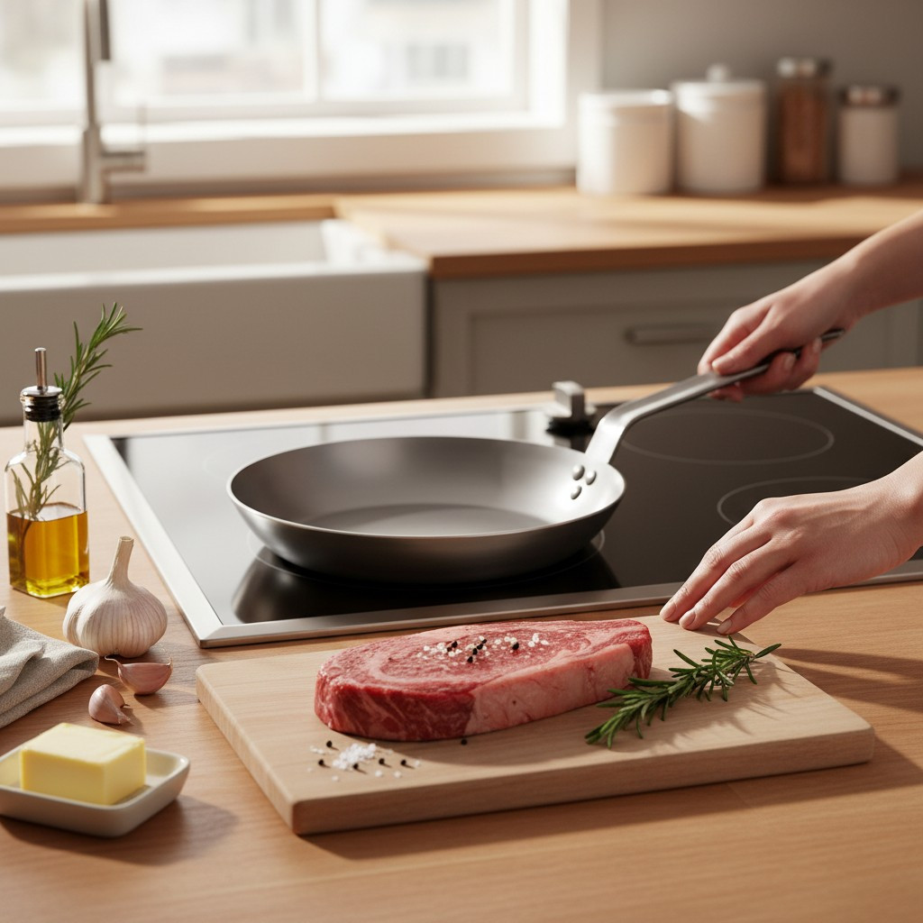 • Kiváló hővezetés: A szénacél kiváló hővezető képessége biztosítja, hogy az étel egyenletesen süljön meg, így elkerülheti az égést és a nyers részeket. A hő egyenletesen oszlik el a serpenyő teljes felületén.
