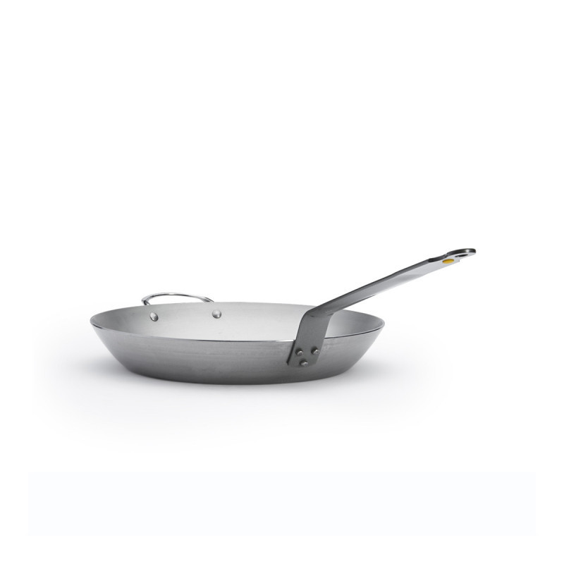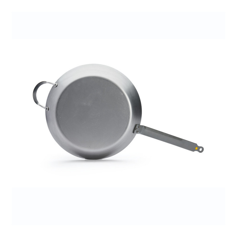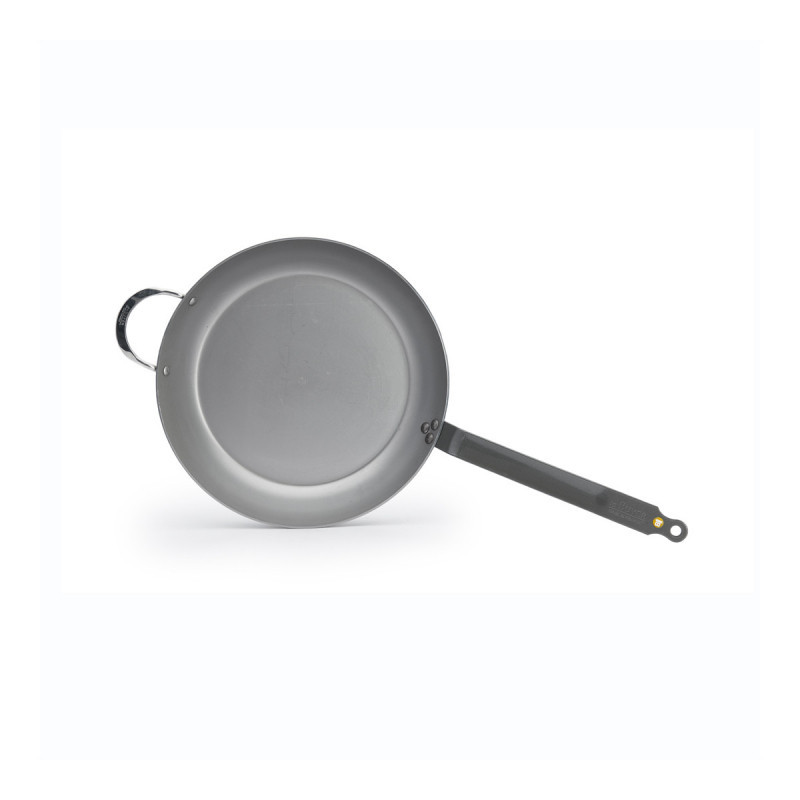 36 cm átmérőjű, professzionális minőségű vas serpenyő füllel. Ideális nagyobb adagokhoz, 100% természetes szénacélból készült, méhviasz bevonattal a tapadásmentességért.