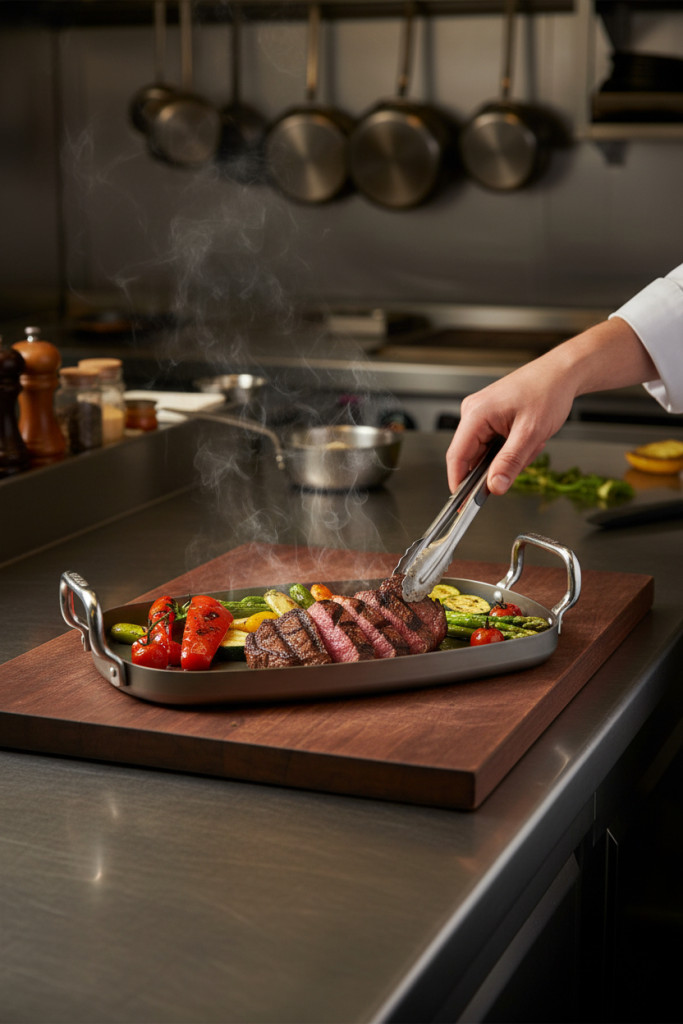 A de Buyer Mineral B téglalap vas serpenyője sokoldalúan felhasználható. Készíthet benne: