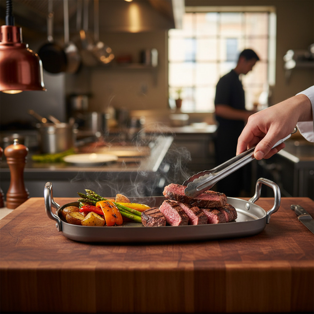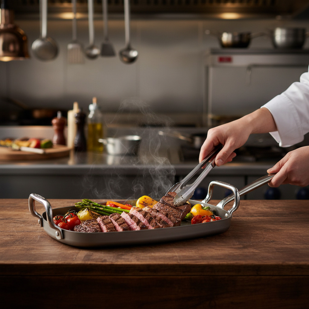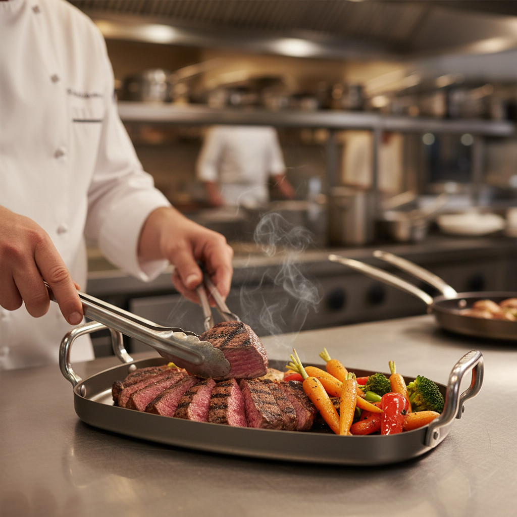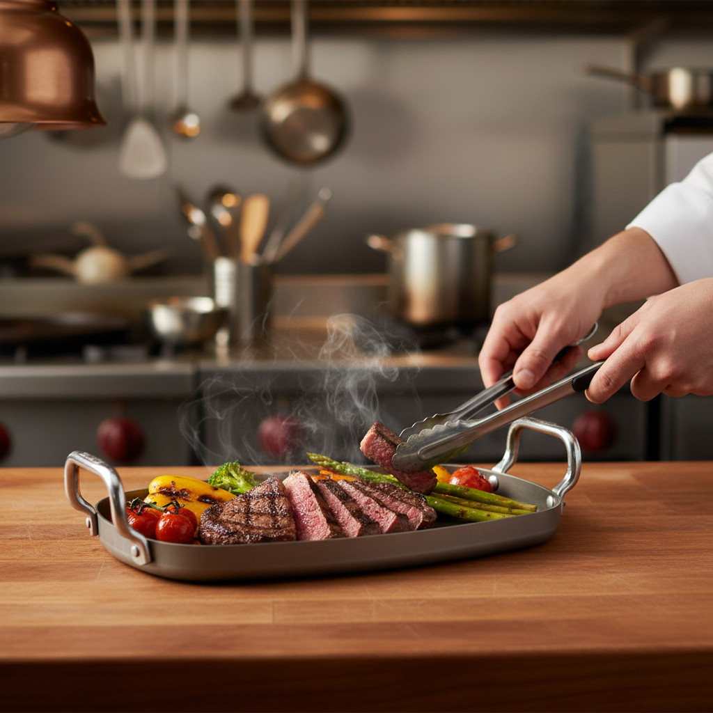 • Kiváló hővezetés: A szénacél kiváló hővezető képessége biztosítja, hogy az étel egyenletesen süljön meg, így elkerülheti az égést és a nyers részeket. A hő egyenletesen oszlik el a serpenyő teljes felületén.