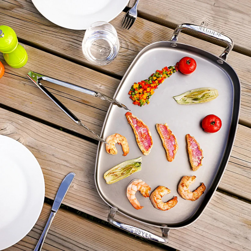 38 cm-es téglalap alakú, professzionális minőségű vas grillserpenyő. Ideális húsok, halak és zöldségek grillezéséhez. 100% természetes szénacélból készült, méhviasz bevonattal a tapadásmentességért.