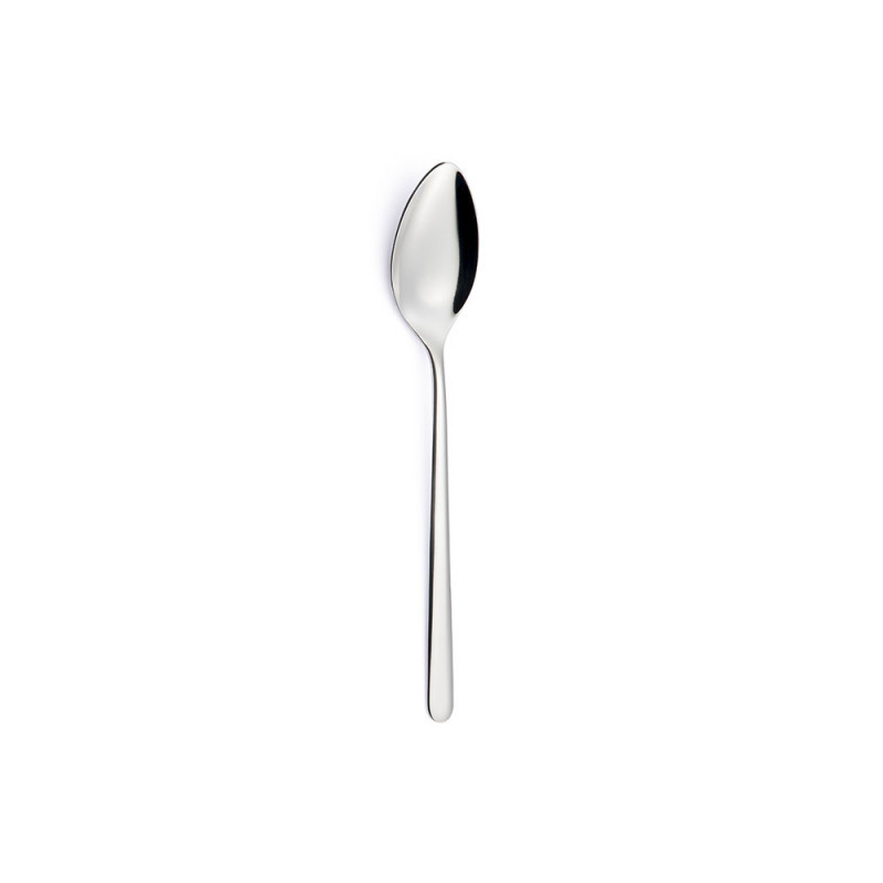 Venice desszertkanál, 4 mm, rozsdamentes A Venice egy 18/10 arányú rozsdamentes acélból készült evőeszközgyűjtemény, polírozott felülettel.Az evőeszközök tükörfényezése egy olyan felületkezelési eljárás, amely során speciális hengerek és nagyon finom szemcsés csiszolópaszták használatával elérjük a kívánt fényt.Ez az evőeszköz feltűnő a kifinomult dizájn miatt, amely a fogantyúk végén található enyhe lekerekítéseknek és a szájjal érintkező részek részletkérdésének köszönhető, ami hozzájárul a modell eleganciájához. Ennek az evőeszköznek a jellegzetes eleme a levél alakú kanál és a vágáskor is elhelyezhető állókés.Velence az evőeszközök gyűjteménye, amely 16 elemből álló széles választékban és5 különböző kivitelben kapható :homokfúvott, polírozott PVD ón arany, polírozott PVD rézbronz, polírozott PVD Metal, polírozott .Olasz termék.Mosogatógépben mosható.