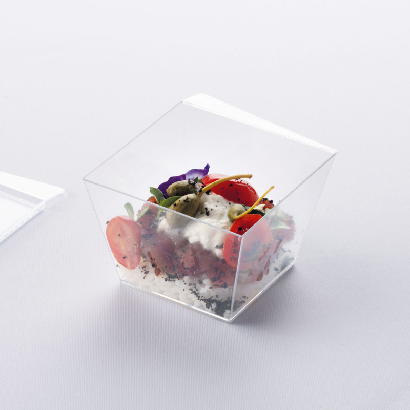 A ZEN 460 ml-es pohárkrém-desszert tégely kifejezetten a professzionális cukrászok, éttermek és catering szolgáltatók igényeire készült. Mérete (100x118x70 mm) és elegáns, átlátszó polikarbonát kialakítása lehetővé teszi, hogy a desszertek rétegei teljes pompájukban érvényesüljenek.