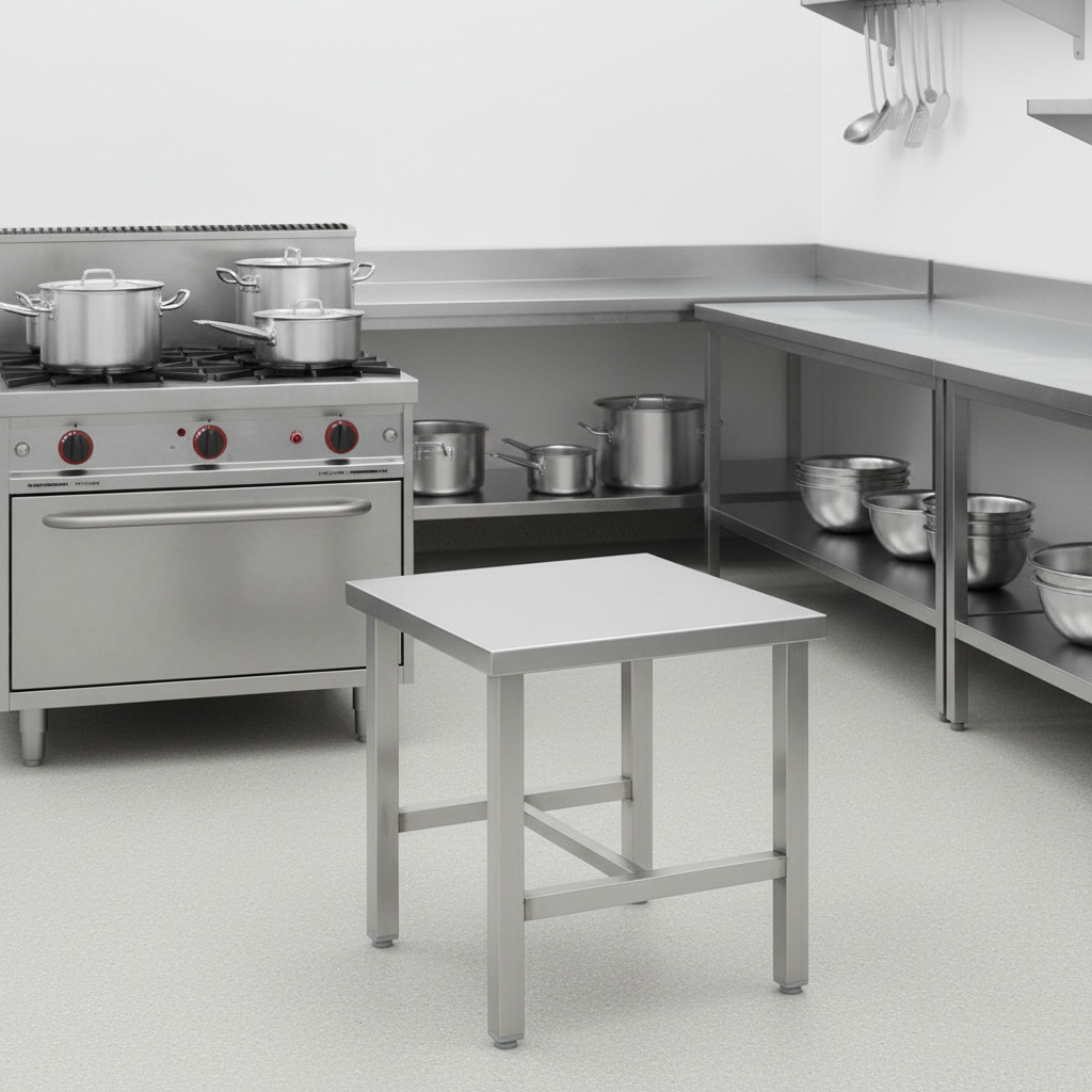 A 400x400x400 mm-es rozsdamentes zsámoly ideális kiegészítő professzionális konyhákba, éttermekbe, büfékbe és ipari környezetbe. Kompakt mérete ellenére kiemelkedő stabilitást és teherbírást nyújt, így fellépőként, ülőfelületként vagy kiegészítő munkafelületként is használható.