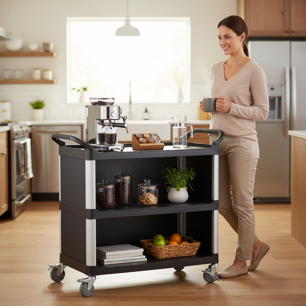 A három polc elegendő helyet biztosít ételek, italok, felszerelések és egyéb kellékek számára, megkönnyítve a tálalást és a kiszolgálást.