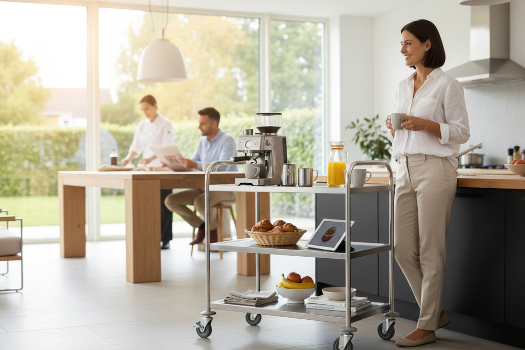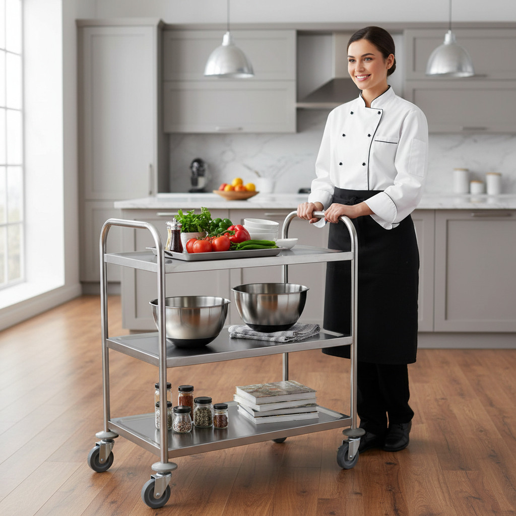 A modern és elegáns megjelenés biztosítja, hogy a zsúrkocsi bármilyen környezetbe tökéletesen illeszkedjen, miközben a praktikus kialakítás megkönnyíti a mindennapi feladatokat.