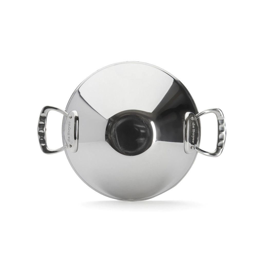 A de Buyer Affinity wok deformálhatatlan edény, többrétegű anyagból készült: kívül rozsdamentes acél és belül alumínium kombinációja. Ez a kombináció biztosítja a hiperreaktív anyagot, amely nagyon gyors hőmérséklet-emelkedést tesz lehetővé, és a tűzről levéve a főzés azonnal leáll. Az egyenletes hőeloszlás az egész szoknyán és az edényben garantálja az egyenletes főzést. A szegecselt öntött rozsdamentes acél oldalfogantyúk ergonomikusak a kényelmes fogásért. A wok modern és elegáns stílusban lett tervezve, csúcsminőségű tükör polírozással.