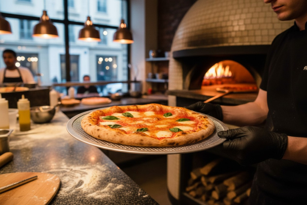 GasztroZoli tipp: A perforált alumínium pizzasütő lemez nagyobb pizzák sütéséhez ideális. A perforáció segíti a levegő áramlását, így a pizza alja ropogós lesz, miközben a tészta egyenletesen átsül.