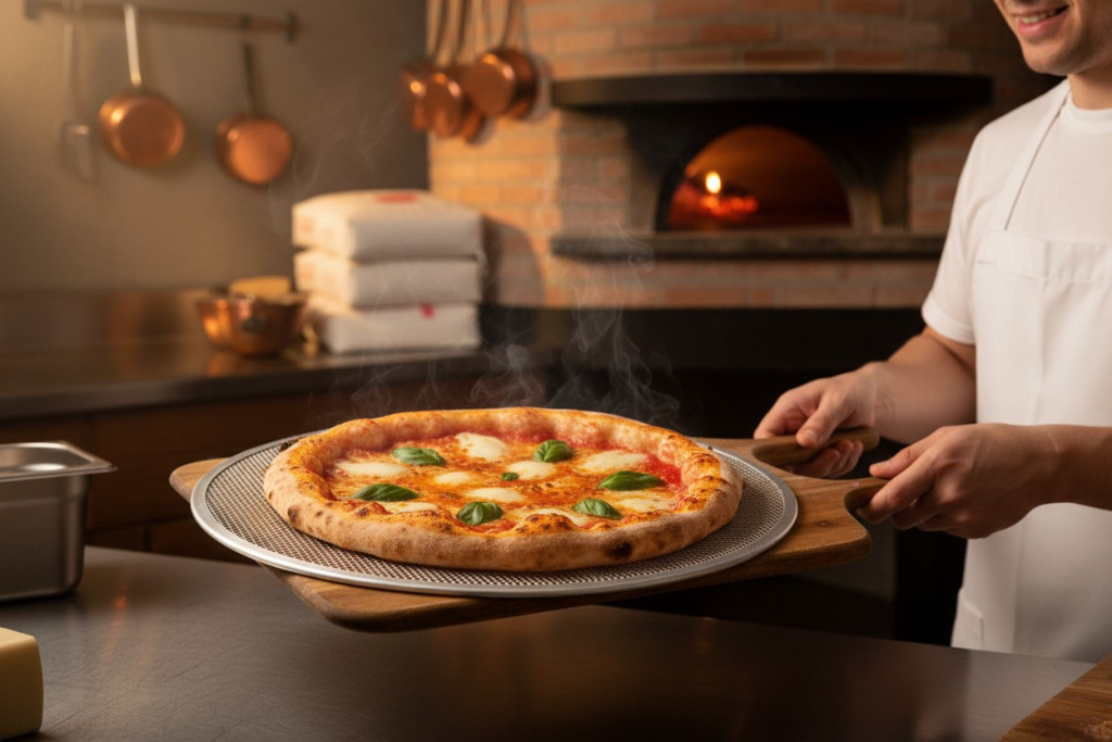 Az alumínium kiváló hővezető, ezért a pizza alja gyorsan átsül, miközben a perforációk biztosítják a megfelelő szellőzést. A pizzasütő lemez kialakítása megkönnyíti a pizza mozgatását pizza lapáttal, így ideális pizzériákban, éttermekben és otthoni pizza sütéshez is.