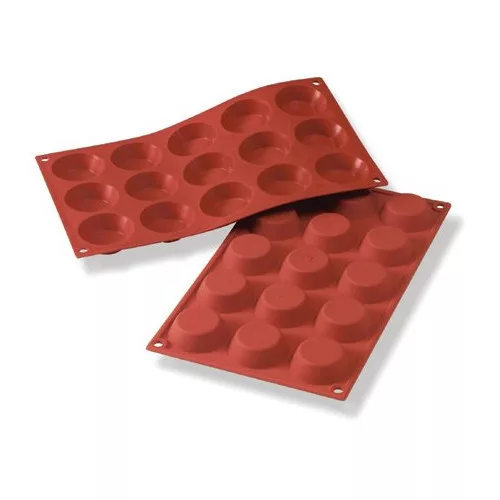 - Kétféle méretű mélyedés: A forma 15 mélyedést tartalmaz, amelyek közül egyesek ø 50 mm, mások pedig ø 32 mm átmérőjűek. Ez a variáció lehetővé teszi különböző méretű és formájú falatok egyidejű elkészítését.