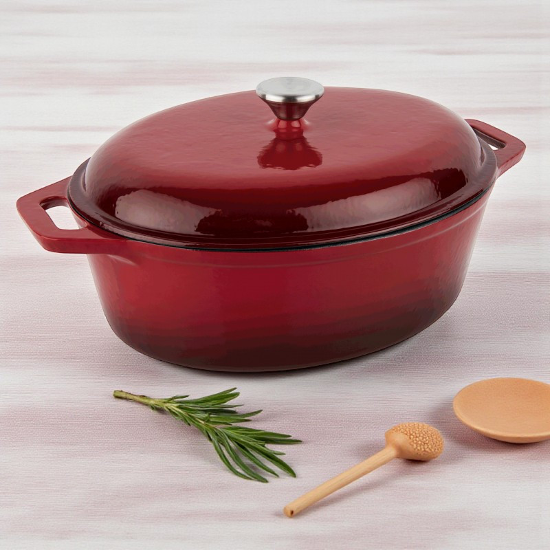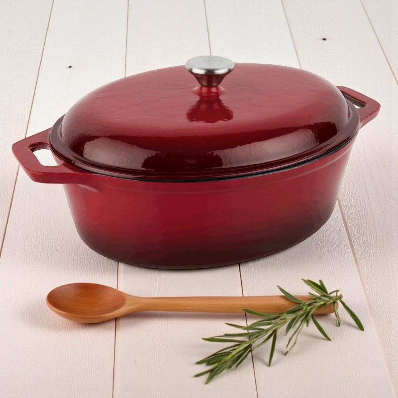 Ez az ovális öntöttvas lábas hosszú távú befektetés, amely minden étkezést különlegessé tesz.