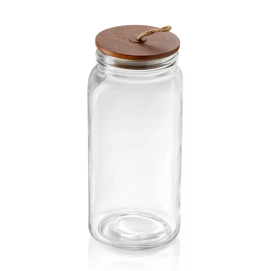 Ez a 2000 ml-es rusztikus üvegtégely fa tetővel az egyik legnagyobb és legelegánsabb megoldás, ha igazán figyelemfelkeltő, természetes és újrahasznosítható csomagolásra van szükséged.